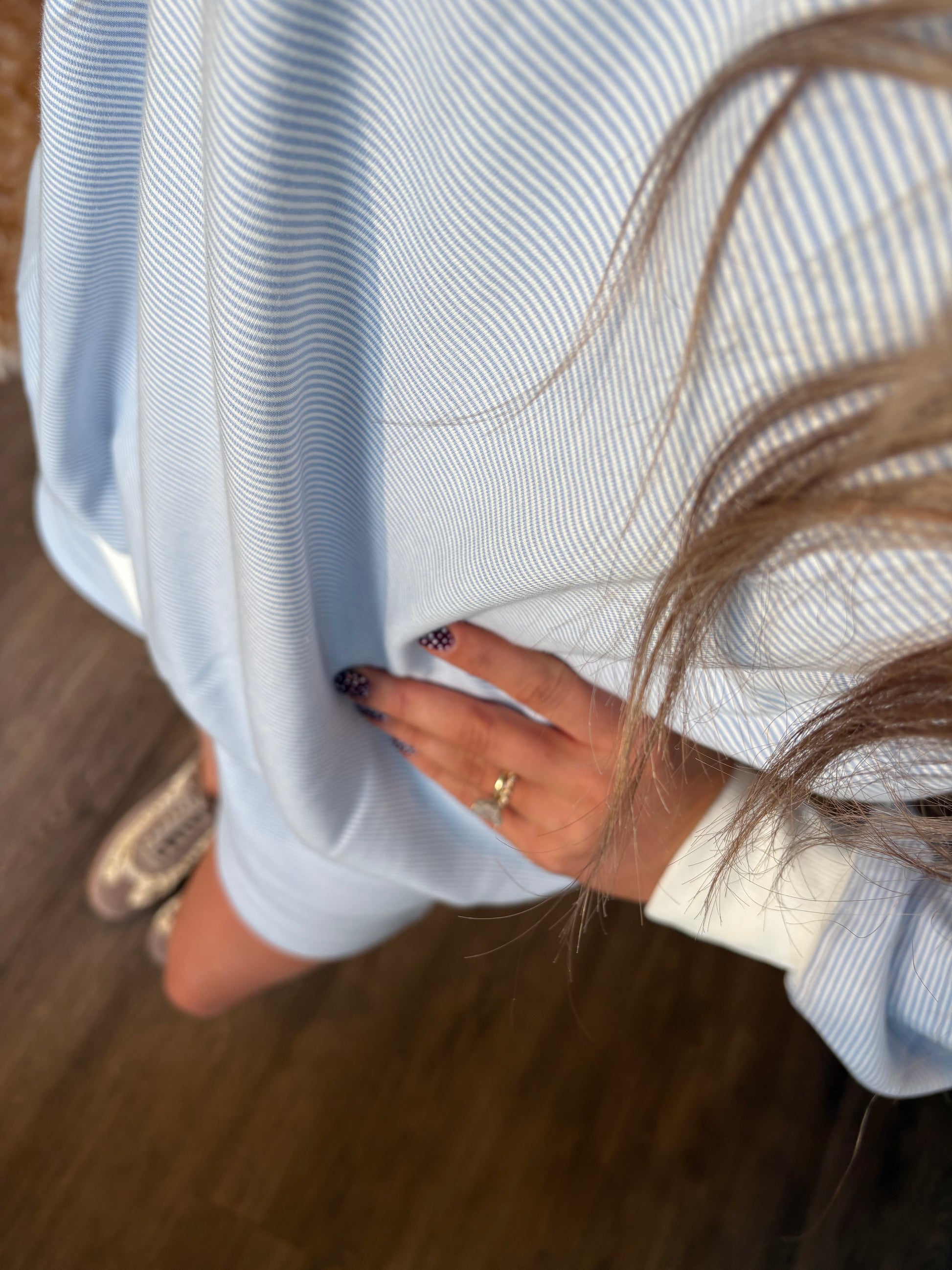 Enhance your wardrobe with our Blue Striped Mockneck Set. Made with a stylish mockneck design and classic blue stripes, this set is perfect for both casual and formal occasions. Made from high-quality materials, this set offers both comfort and style for your everyday wear. Upgrade your style with our Striped Mockneck Set.